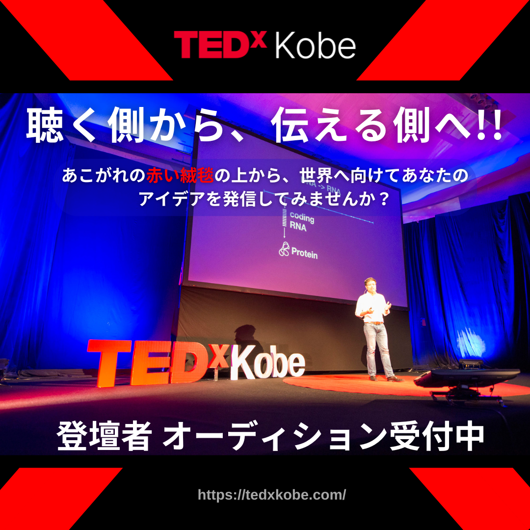 TEDxKobeでは登壇者を募集しています。スピーカーの募集はこのWebサイトや各種SNSで告知しています。