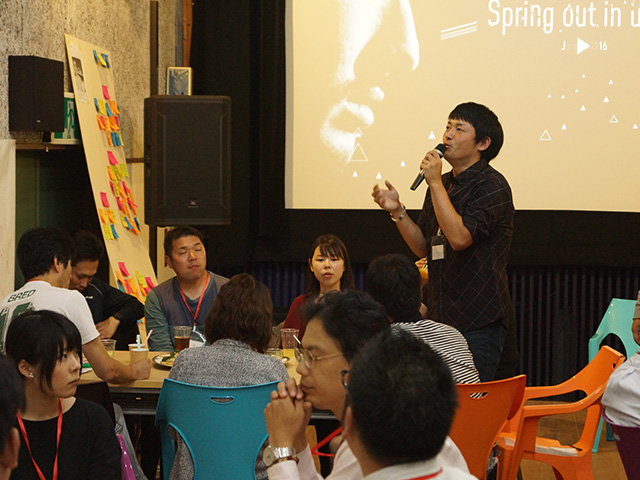 パブリックビューイング終了後、セッション3のトークやパフォーマンスを中心に感想や意見を交換するイベント「豊劇ブレイク」を行いました。議論は大いに盛り上がり、イベント終了後も遅くまで話をする参加者が沢山おられました。