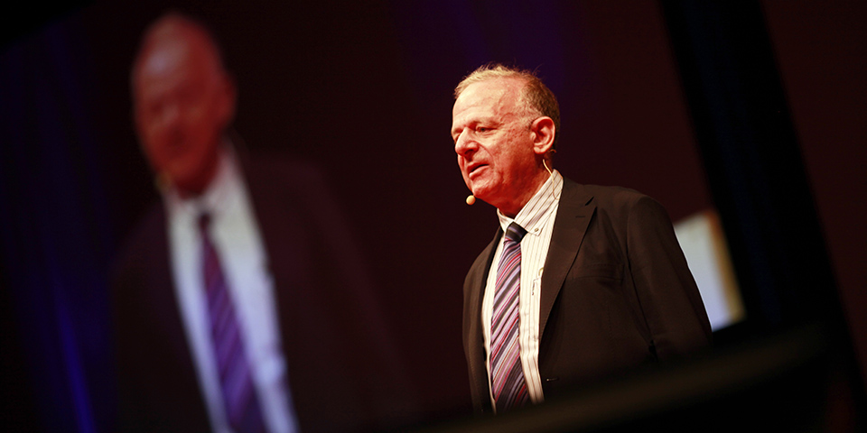 マルコンさんは、世界一安全な乗り物であるエレベーターを30年間作り続け、その中で「リニアモーター・エレベーター」という新しいエレベーターの可能性を見いだしました。実際に舞台上でエレベーターの実験をしながらプレゼンテーションしていただきました。