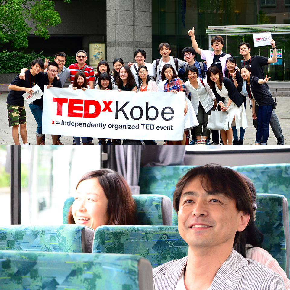 新神戸・三ノ宮から会場までの近畿タクシー様提供の送迎バスを運行しました。16名の参加者の皆さま、ドライバー様のご協力もあり、約20分という短い運行時間でしたが、TEDxKobeの楽しみ方や神戸の魅力を発信することができました。降車後には、参加者の方から「皆で肩を組もう!」といったお声を頂き、皆さま笑顔での記念撮影となりました。
