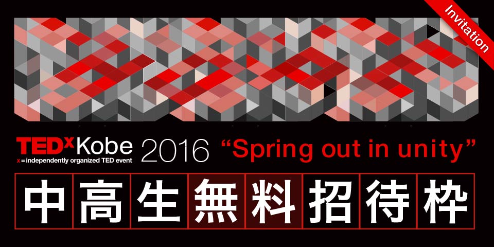 2016年6月12日に開催されるTEDxKobe 2016では、中学生と高校生を無料で招待する、中高生無料招待企画への【追加募集】を行います。