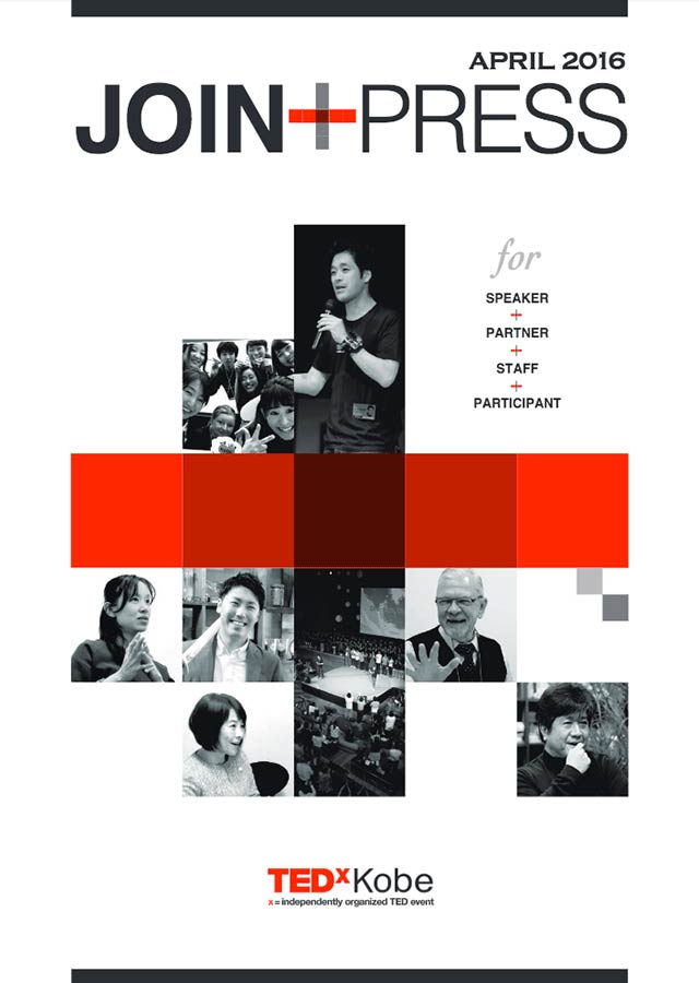 Our purpose of JOINT+PRESS, a printed booklets, is to inform of TEDxKobe’s friends who agree with our hopes and wishes of TEDxKobe, as well as to share about these priceless experiences we have through TEDxKobe activities.